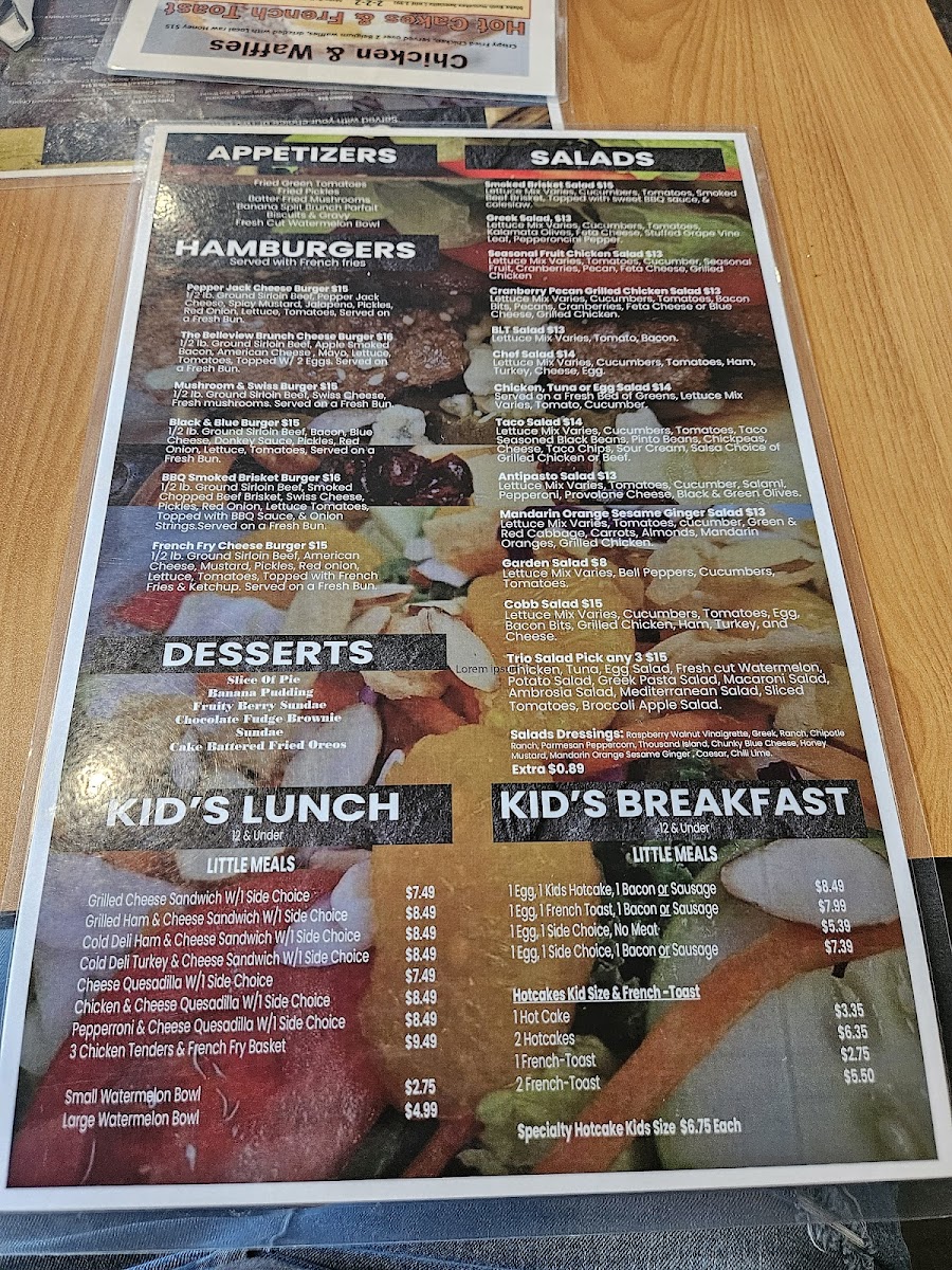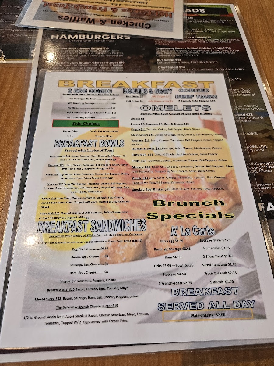 Bacon, Sausage, Ham, Egg, Cheese, Peppers & Onions Sandwich served on your choice of White, Wheat, Rye Toast, or Croissant Also Try Your Sandwich served on our special Hotcake or French Toast Bread (add $2)