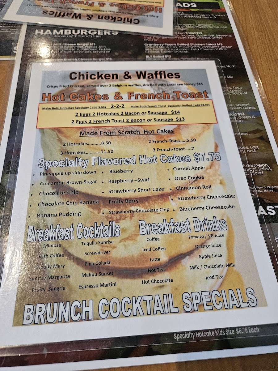 2 Eggs & 1 Specialty Hotcake Served with Your Choice of One Side & Toast